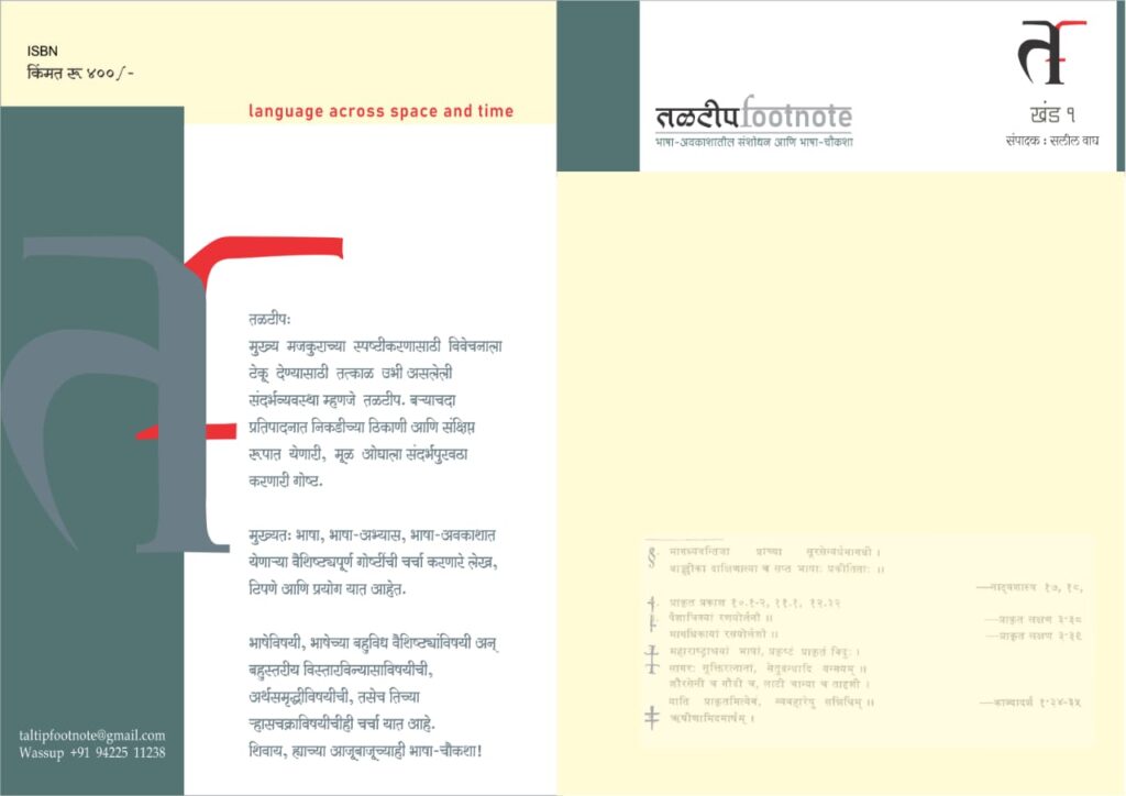 तळटीपFootnote हे महाराष्ट्रातील काही भाषाअभ्यासकांनी मिळून सुरू केलेले प्रकाशन आहे. आम्ही भाषाविज्ञान आणि भाषाअभ्यासाच्या परिघातील लेखन प्रकाशित करतो. तळटीप नावाने एक नियतकालिक आम्ही प्रकाशित करतो.
